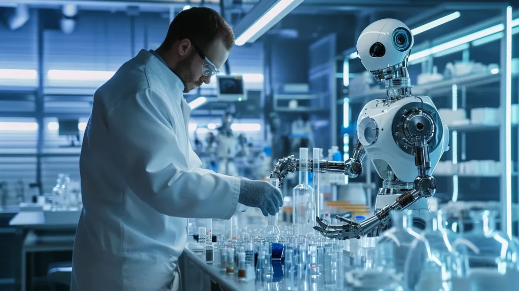 اتوماسیون هوشمند در آزمایشگاه‌ها و واحدهای صنعتی: ترکیب هوش مصنوعی با رباتیک، مسیر را برای آزمایشگاه‌های خودکار و هوشمند هموار می‌کند. در واقع ربات‌ها می‌توانند با کمک AI آزمایش‌ها را طراحی و اجرا کنند. همچنین می‌توانند بعد از نمونه برداری و انجام تحلیل‌های دقیق، تصمیم‌گیری‌های علمی انجام دهند. این اتوماسیون بهره‌وری را افزایش می‌دهد و حتی خطاهای انسانی را هم پایین می‌آورد.
