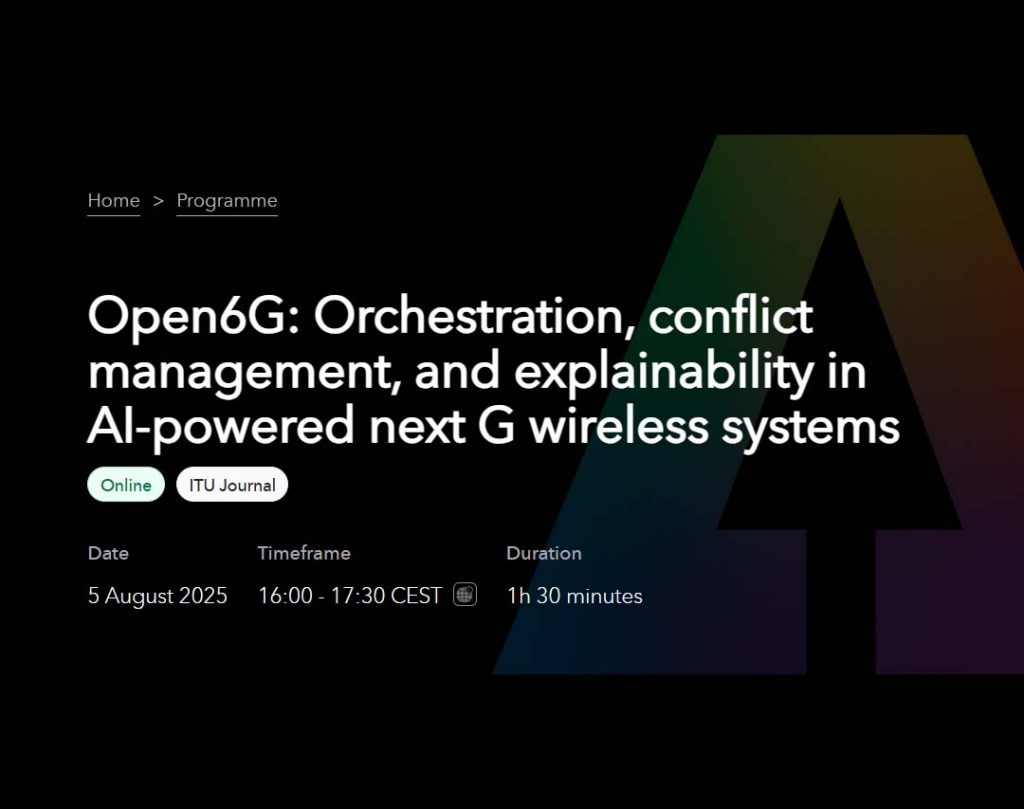 این رویداد یک وبینار تخصصی در چارچوب برنامه AI for Good است که توسط اتحادیه بینالمللی مخابرات (ITU) برگزار میشود. این جلسه به بررسی کارهای پروفسور توماسو ملودیا در زمینه اصول معماری و الگوریتمی برای طراحی شبکههای سلولی نسل بعدی (6G) مبتنی بر هوش مصنوعی، باز، قابل برنامهریزی، و مجازیسازیشده میپردازد. تمرکز این وبینار بر ارکستراسیون مبتنی بر نیت (intent-driven orchestration)، مدیریت تعارض در شبکههای رادیویی (RAN)، و قابلیت توضیحپذیری (explainability) رفتار شبکه است.