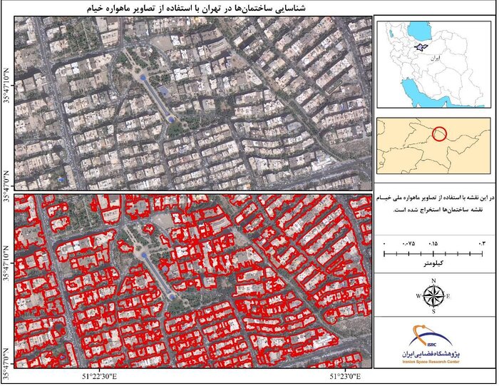 متخصصان پژوهشگاه فضایی ایران موفق شدند با بهرهگیری از تصاویر باکیفیت ماهواره بومی «خیام» و الگوریتمهای پیشرفته هوش مصنوعی، نقشه دقیق ساختمانهای مناطق شمالی تهران را تهیه کنند.