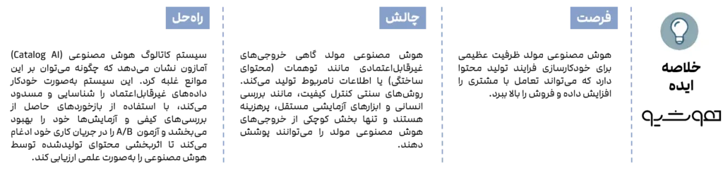 اما آمازون رویکرد بهتری برای عملیات عظیم کاتالوگ محصولات خود توسعه داده است؛ سیستمی مبتنی بر هوش مصنوعی مولد به نام Catalog AI که دادههای غیرقابلاعتماد را شناسایی و مسدود میکند، ایدههایی برای صفحات جدید محصولات تولید و اثربخشی آنها را آزمایش میکند و با استفاده از بازخوردهای حاصل از بررسیهای کیفی و آزمایشها بهصورت خودکار خود را بهبود میبخشد. این سیستم قادر است سالانه دهها میلیون فرضیه را ایجاد و آزمایش کند، درحالیکه سیستمهای مبتنی بر نیروی انسانی معمولاً تنها چند هزار فرضیه را میتوانند آزمایش کنند.