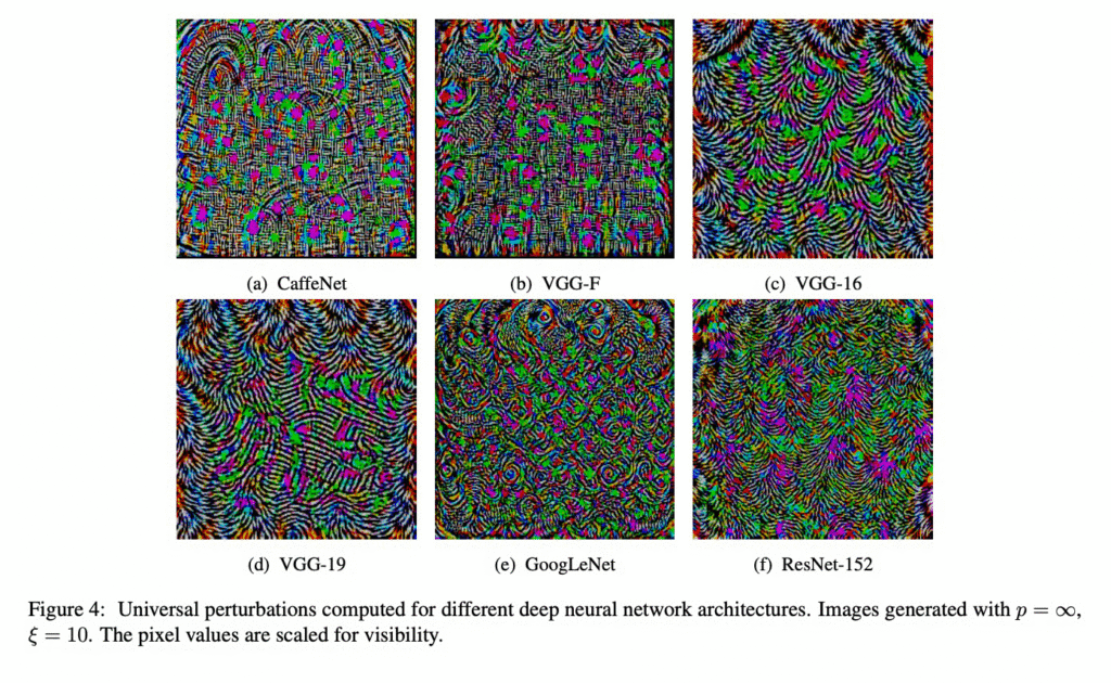 از طرفی نشان داده شد که نمونه‌های خصمانه جهانی در معماری‌ها تعمیم می‌یابند. این اغتشاشی است که وقتی به بسیاری از تصاویر اضافه شود، پیش‌بینی آن تصاویر را تغییر می‌دهد. نکته مهم این است که نمونه‌های جهانی با دانش جعبه سفید کامل فقط یک شبکه پیدا می‌شوند.