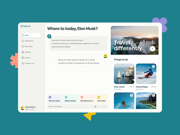 لیلا از نظر طراحی مشابه مایندتریپ است؛ گفتوگوی متنی همراه با نقشه و تصاویر. اما برای نمایش جزئیات تصویری گاهی چند درخواست لازم است. اشتراک سالانه ۴۹ دلاری آن، تخفیفهایی تا ۲۰ درصد در برخی هتلها نیز ارائه میدهد. با این حال، لحن آن غیررسمی است. وقتی از سفر احتمالی پاییزی به ورمونت گفتم پس از چند پرسش پاسخ داد: «جزئیات رو بفرست تا برات کلی کار خفن پیدا کنم!» این لحن چندان حرفهای نیست. علاوه بر این، کاربران پیش از رسیدن به محدودیت رایگان، کمتر از ۱۰ پیام میتوانند ارسال کنند. هرچند اطلاعات مفیدی مانند محل اجاره قایق در دریاچه شامپلین و وجود ۱۰۰ پل پوشیده در ورمونت به من داد اما با توجه به وجود ابزارهای مشابه رایگان، ارزش پرداخت هزینه چندانی نداشت.