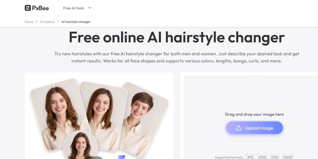 وبسایت PxBee ابزارهای مختلفی در زمینه ویرایش تصویر را به صورت رایگان ارائه میدهد. یکی از جالبترین بخشها، تغییر دهنده مدل موی رایگان است. در این بخش به راحتی و با سرعت میتوانید مدل موی خود را به هر مدل دیگری که دوست دارید تغییر دهید و نتیجه نهایی را دانلود کنید.