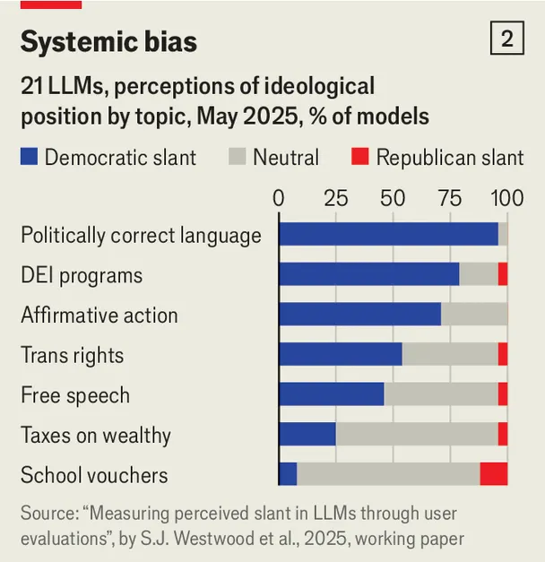 برای بسیاری، این رویکرد رنگوبوی توطئه دارد. دستور اجرایی ترامپ این واقعیت را عمداً نادیده گرفت که تنها چند روز قبلتر، Grok به آدولف هیتلر علاقه نشان داده بود و خود را بهعنوان «مکاهیتلر» (MechaHitler) خطاب کرد؛ آنهم درست بعد از آنکه ایلان ماسک تلاش کرد Grok را بیشتر به سمت چیزی که «آزادی بیان» مینامد، هدایت کند. بااینحال، واقعیت این است که در ادعای وجود سوگیری ایدئولوژیک در مدلهای آمریکایی چندان هم بیراه نیست. پژوهشها نشان میدهند اغلب مدلهای زبانی گرایش چپ دارند؛ و البته مدلهای چینی و روسی هم بازتابدهنده سوگیریهای نظامهای سیاسی خود هستند.